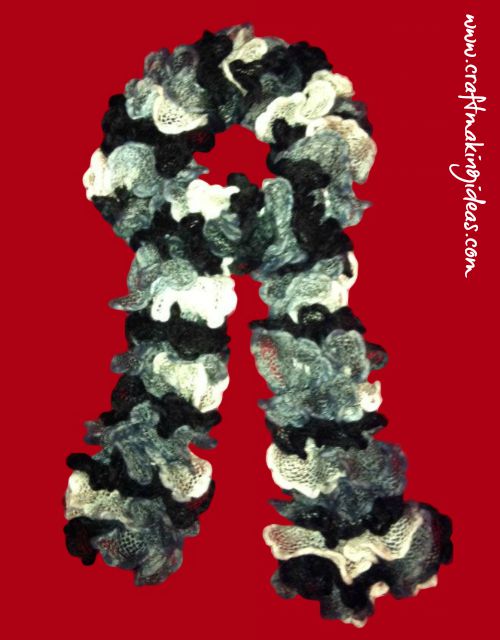 Bolero Ribbon Ruffle Yarn Scarf in Black, Grey & White