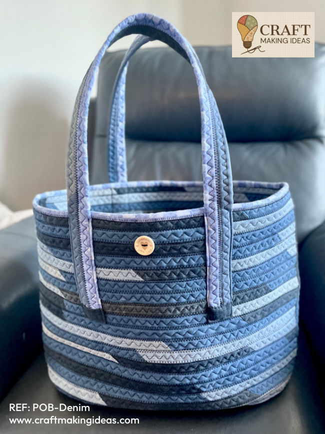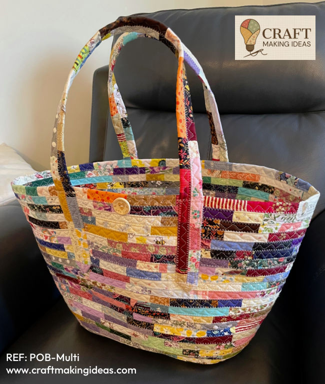 Each bag is unique. Approx 22″ Wide by 12″ Tall + handles